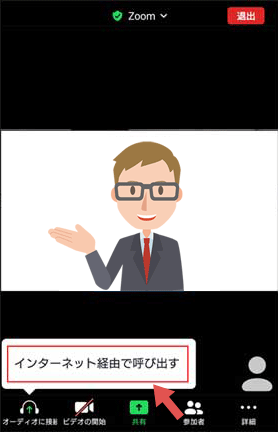 左下に「インターネット経由で呼び出す」と出ますので、タップしてマイク設定を完了してください。